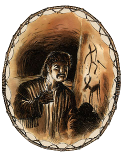 Mais ma curiosité fut plus forte que ma prudence. Un jour que je n'avais pas grand-chose à faire, je décidai d'aller explorer la grotte. J'avais apporté des chandelles pour m'éclairer. Au début, aucun problème. Je pus visiter deux ou trois grandes salles avec des décorations peintes sur les murs. Il y avait aussi des traces de feu. Puis je m'engageai dans une sorte de tunnel. Ce tunnel devint de plus en plus petit et je dus ramper. Pas facile avec une chandelle à la main. |