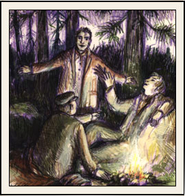 Nous avons marché ensemble jusqu'à la nuit tombée. Leur compagnie me redonnait courage. Ils avaient l'air de savoir comment se rendre à Gdansk et m'ont fourni, dans le détail, les étapes de leur itinéraire. Au soir, nous nous sommes arrêtés pour bivouaquer dans un bosquet de pins centenaires. Nous avons allumé un petit feu et j'ai partagé avec eux l'une de dernières saucisses. Il faisait assez doux et le tapis d'aigrettes mortes nous faisait un matelas presque aussi doux que de la plume. Nous nous endormîmes promptement.
