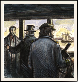 La traversée se faisait par un temps idéal et nous sortions chaque fin d'après-midi nous promener sur le pont. Accoudé au bastingage, le regard perdu au loin, monsieur Morse semblait puiser dans cette immensité azurée et ondoyante qui se mariait avec l'horizon, l'inspiration pour de nouvelles inventions ou de nouveaux tableaux. Monsieur Morse m'avait confié qu'il faisait aussi de la peinture.