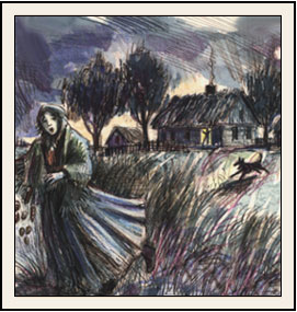 Nous avons ainsi cheminé ensemble pendant trois jours, heureux et insouciants comme deux gamins faisant l'école buissonnière. D'après notre estimation, nous avions parcouru environ 20 lieues sur la centaine qui nous séparait de Gdansk. À la fin de la troisième journée, nous avions épuisé nos vivres. Nous étions sur un chemin bordé par des fermes et Janda me confia son intention d'aller faire une petite incursion dans l'une de celles-ci, pour trouver de quoi remplir nos estomacs qui glougloutaient comme mille gargouilles, une nuit d'orage. |